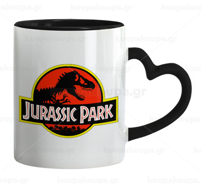 Jurassic park, Κούπα καρδιά χερούλι μαύρη, κεραμική, 330ml