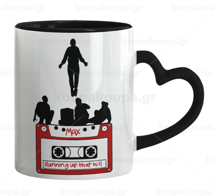 Running up that hill, Stranger Things, Κούπα καρδιά χερούλι μαύρη, κεραμική, 330ml