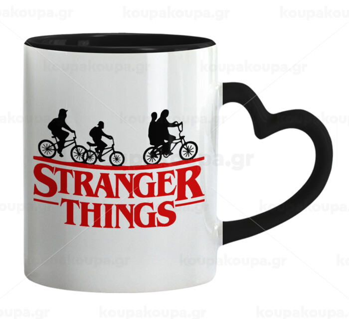 Stranger Things red, Κούπα καρδιά χερούλι μαύρη, κεραμική, 330ml