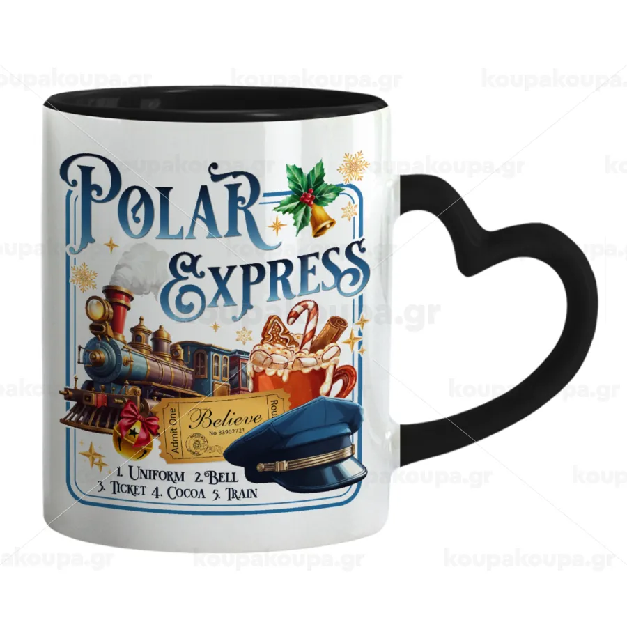 The Polar Express, Κούπα καρδιά χερούλι μαύρη, κεραμική, 330ml