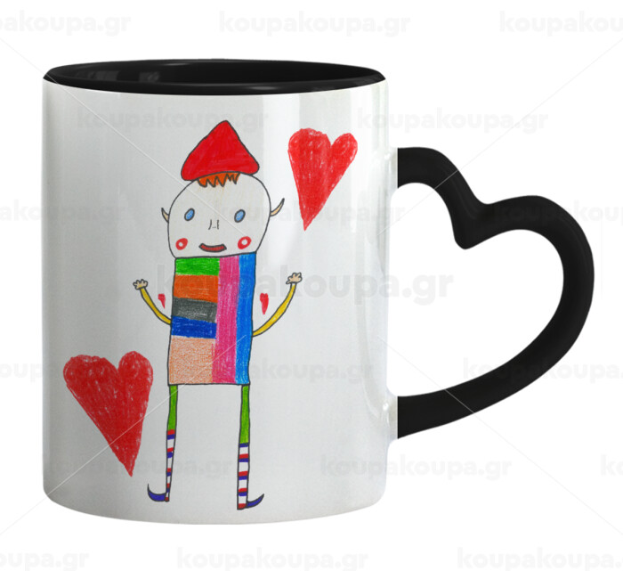 Ο Αλέξανδρος ζωγραφίζει την Αγάπη, Κούπα καρδιά χερούλι μαύρη, κεραμική, 330ml