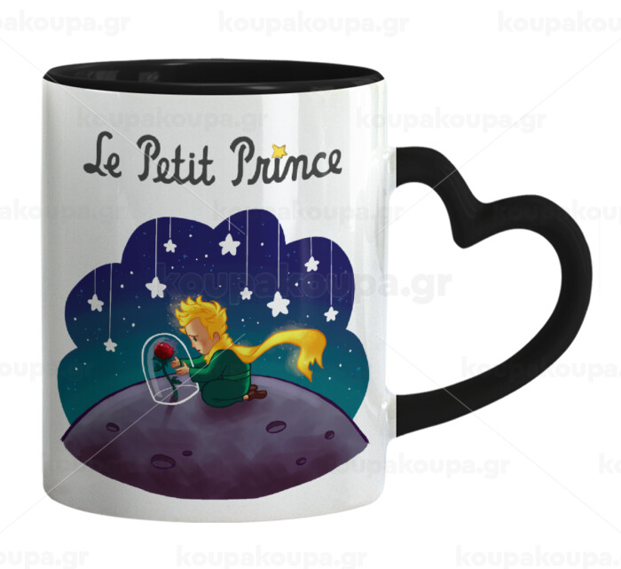 Ο μικρός πρίγκιπας, Κούπα καρδιά χερούλι μαύρη, κεραμική, 330ml