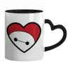 Baymax heart, Κούπα καρδιά χερούλι μαύρη, κεραμική, 330ml