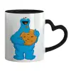 Cookie Monster, Κούπα καρδιά χερούλι μαύρη, κεραμική, 330ml