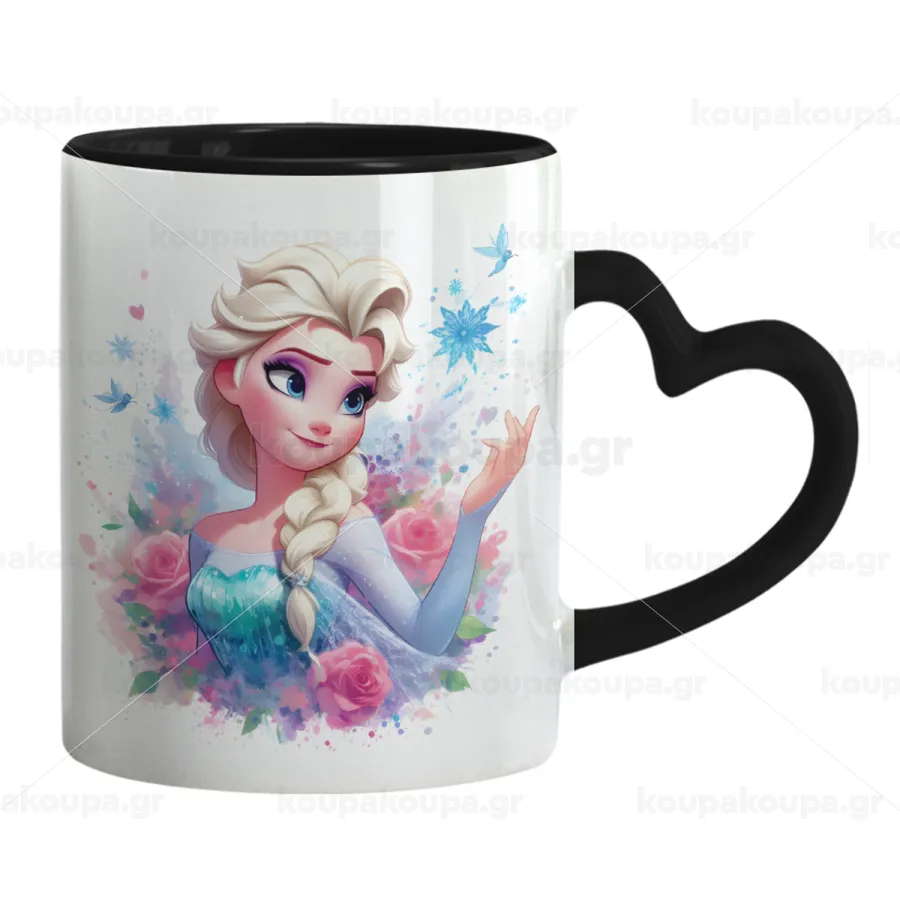 Elsa Princess, Κούπα καρδιά χερούλι μαύρη, κεραμική, 330ml