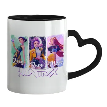 HUNTR/X K-pop girl group, Κούπα καρδιά χερούλι μαύρη, κεραμική, 330ml