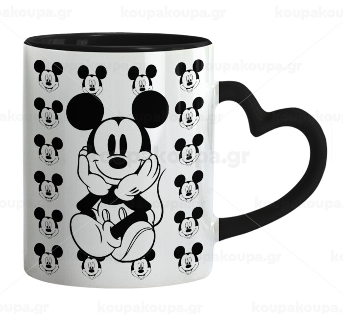 Mickey, Κούπα καρδιά χερούλι μαύρη, κεραμική, 330ml