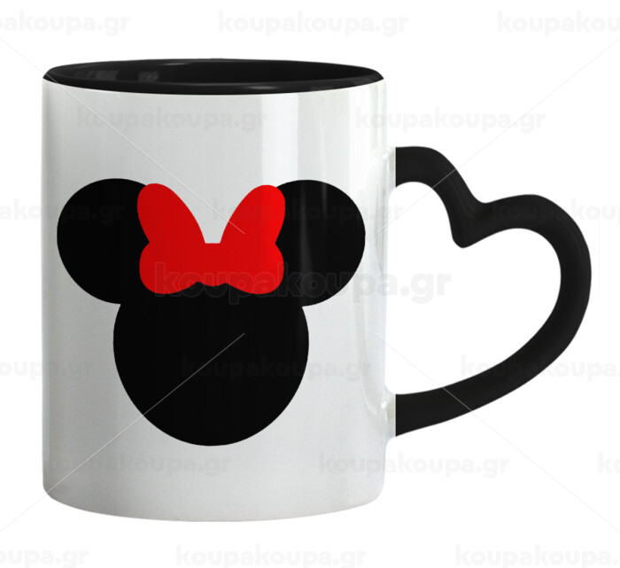 Minnie head, Κούπα καρδιά χερούλι μαύρη, κεραμική, 330ml
