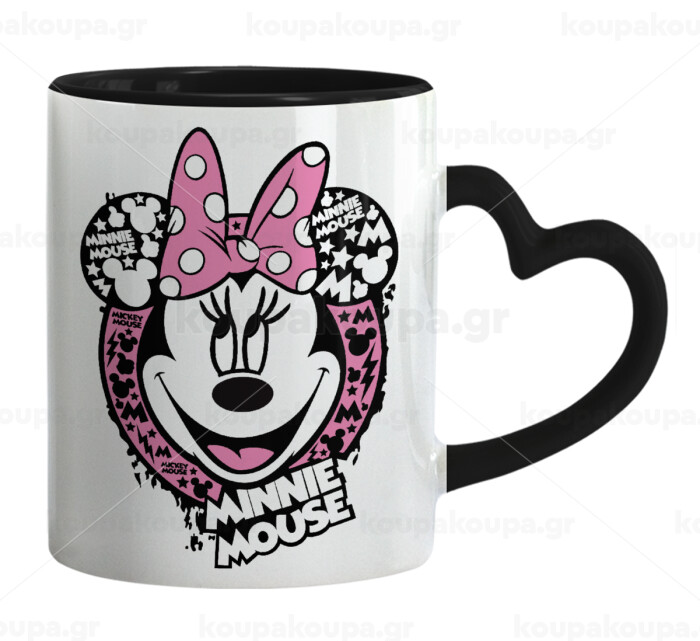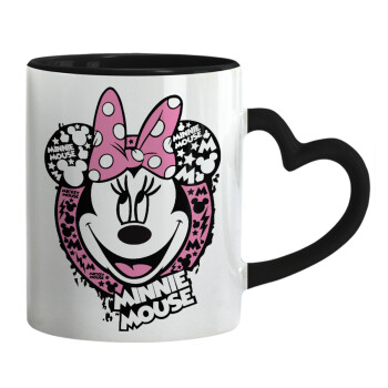 Minnie mouse, Κούπα καρδιά χερούλι μαύρη, κεραμική, 330ml