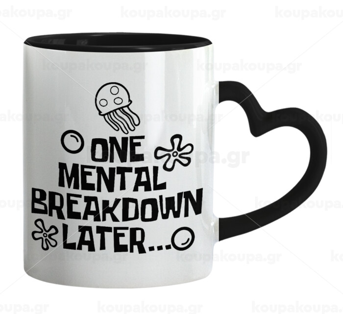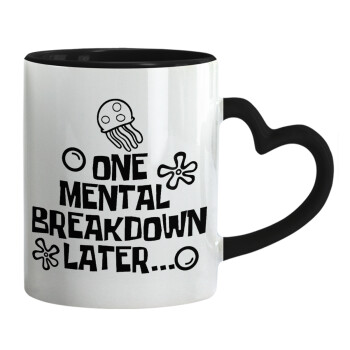 one mental breakdown later bob spongebob, Κούπα καρδιά χερούλι μαύρη, κεραμική, 330ml