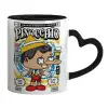 Pinocchio, Κούπα καρδιά χερούλι μαύρη, κεραμική, 330ml