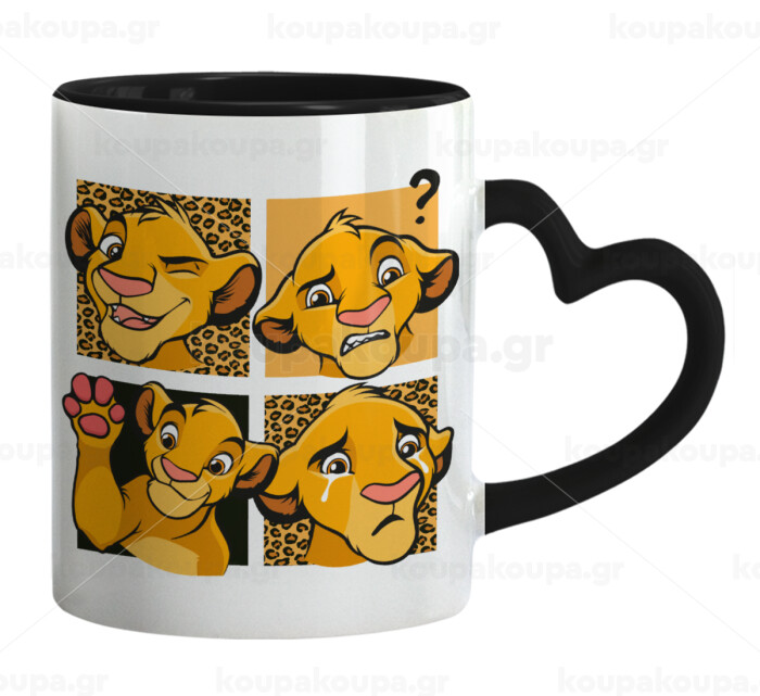 Simba, lion king, Κούπα καρδιά χερούλι μαύρη, κεραμική, 330ml