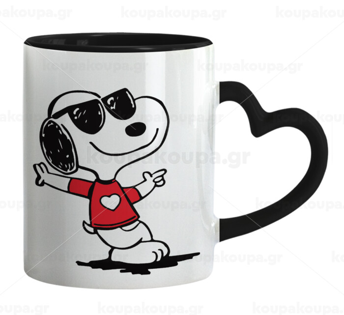 Snoopy καρδούλα, Κούπα καρδιά χερούλι μαύρη, κεραμική, 330ml