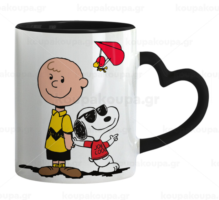 Snoopy & Joe, Κούπα καρδιά χερούλι μαύρη, κεραμική, 330ml