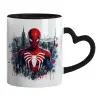 Spiderman City, Κούπα καρδιά χερούλι μαύρη, κεραμική, 330ml