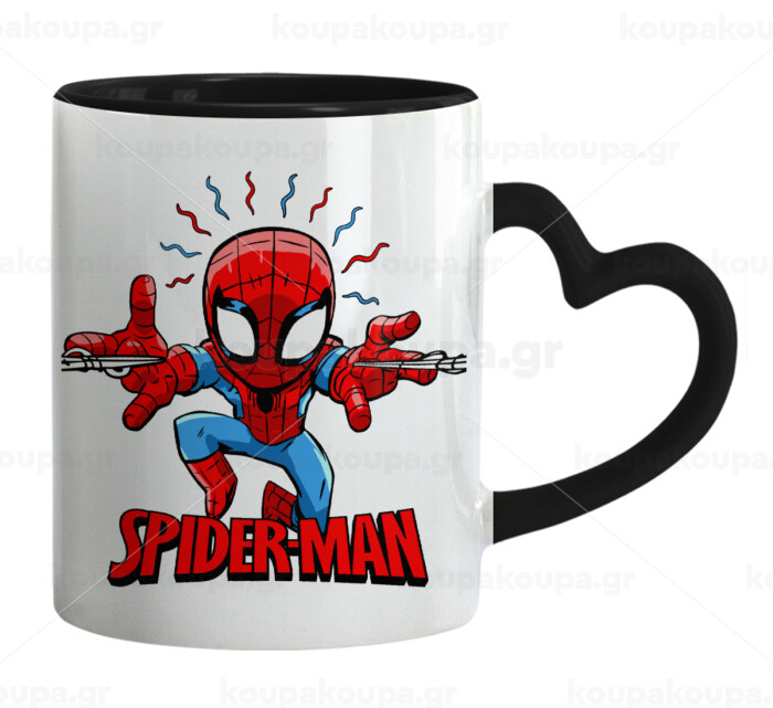 Spiderman flying, Κούπα καρδιά χερούλι μαύρη, κεραμική, 330ml