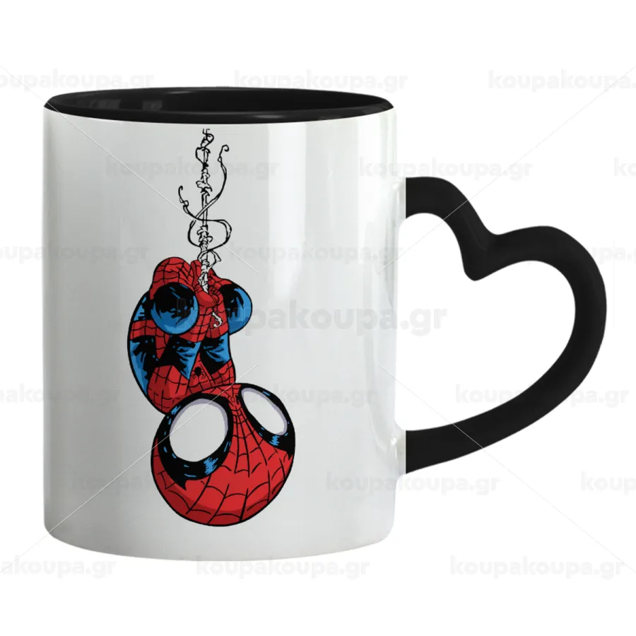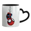 Spiderman upside down, Κούπα καρδιά χερούλι μαύρη, κεραμική, 330ml