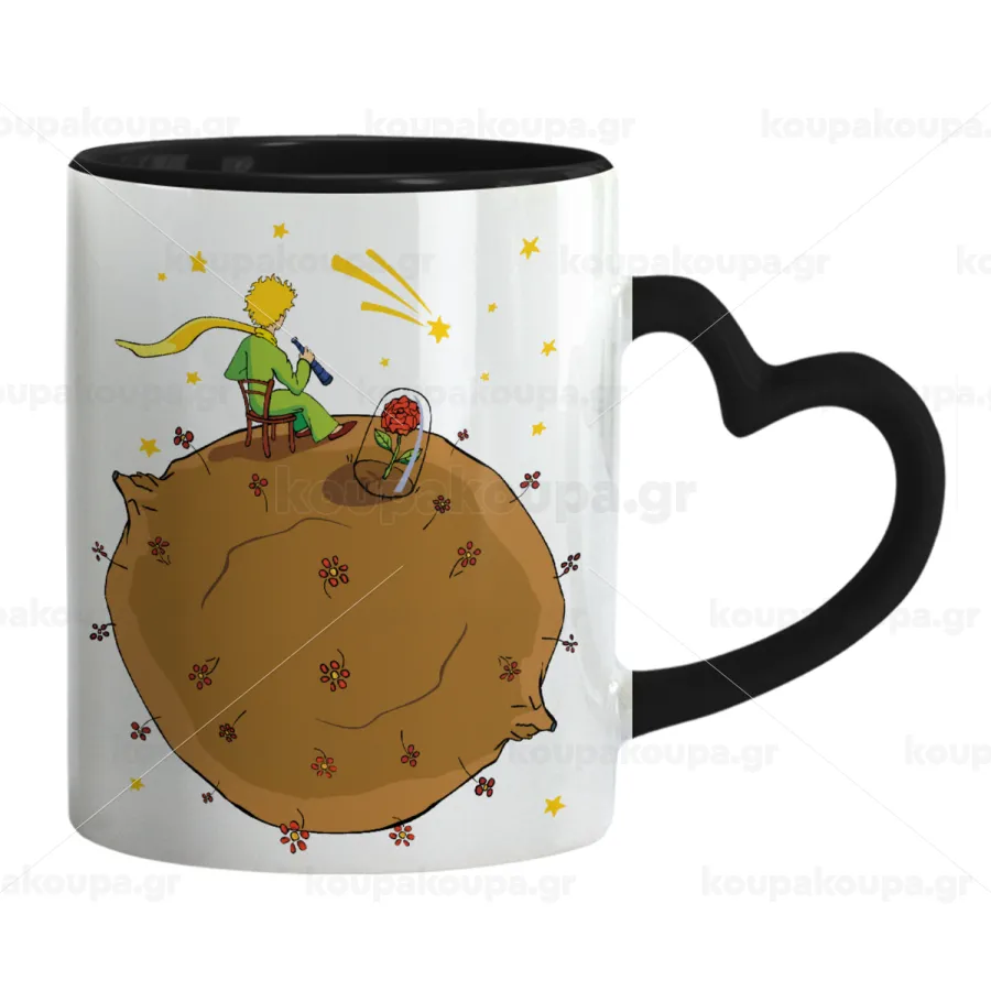 Ο μικρός πρίγκιπας planet, Κούπα καρδιά χερούλι μαύρη, κεραμική, 330ml