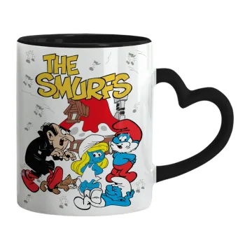 Τα στρουμφάκια, Κούπα καρδιά χερούλι μαύρη, κεραμική, 330ml