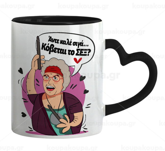 Αντε καλέ, σιγά, κόβεται το σέξ ;, Κούπα καρδιά χερούλι μαύρη, κεραμική, 330ml