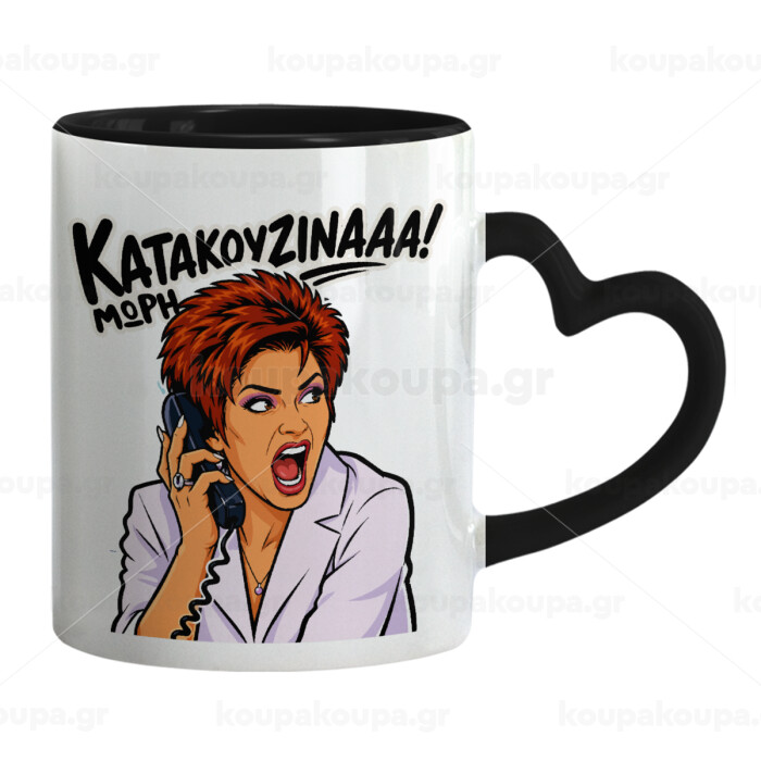 Μωρή Κατακουζίνα, Κούπα καρδιά χερούλι μαύρη, κεραμική, 330ml