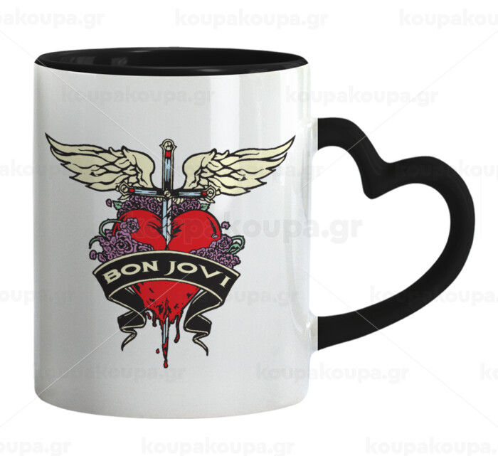 Bon Jovi, Κούπα καρδιά χερούλι μαύρη, κεραμική, 330ml