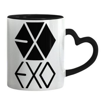 EXO Band korea, Κούπα καρδιά χερούλι μαύρη, κεραμική, 330ml