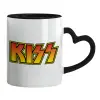 KISS, Κούπα καρδιά χερούλι μαύρη, κεραμική, 330ml
