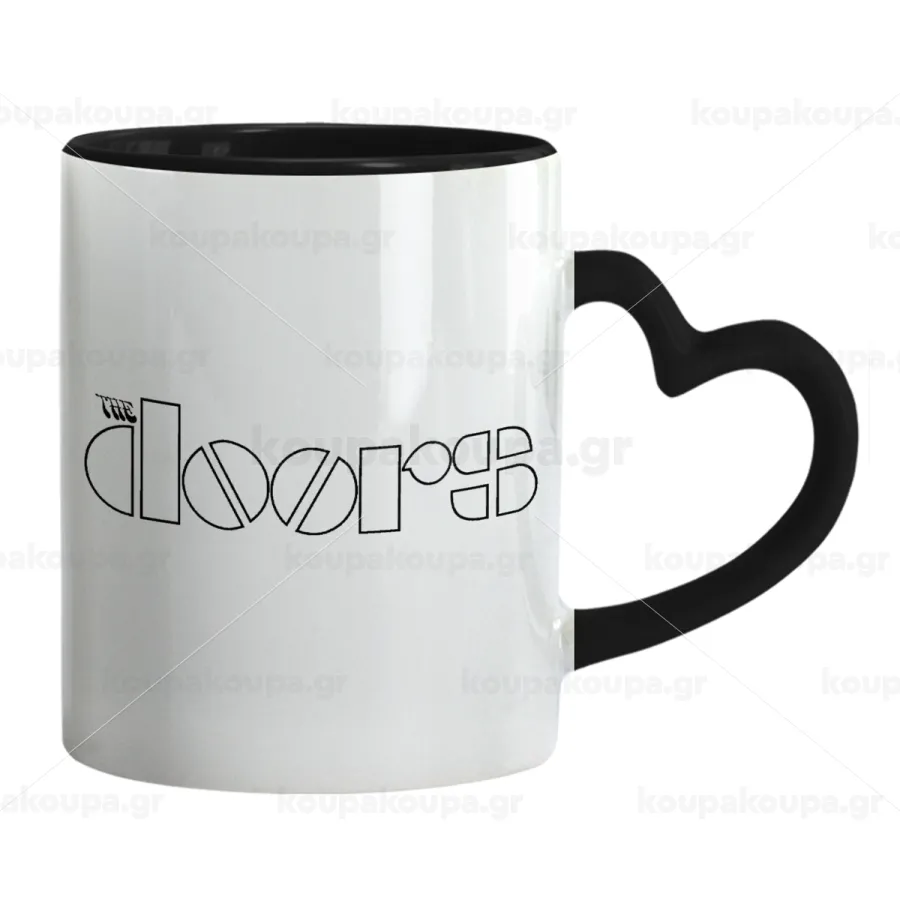 The Doors, Κούπα καρδιά χερούλι μαύρη, κεραμική, 330ml