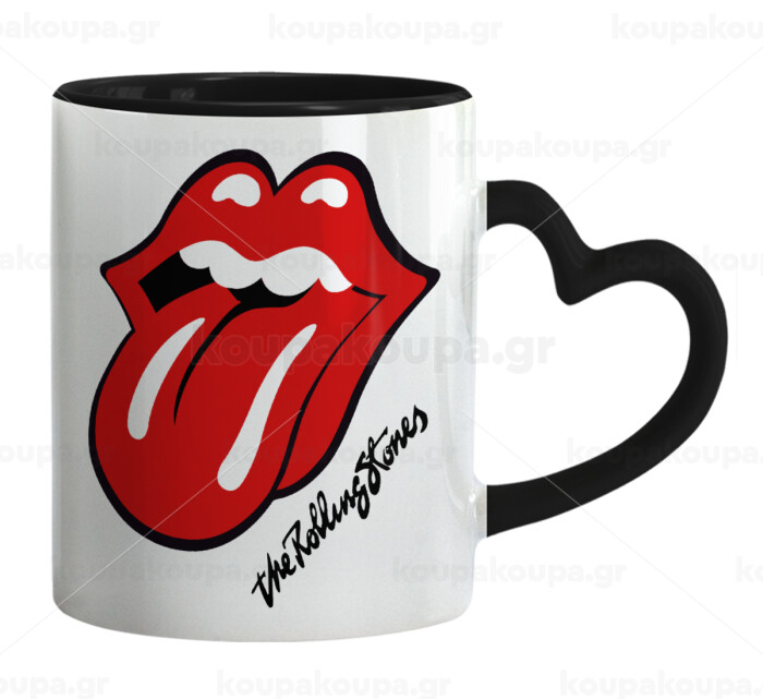 The rolling stones, Κούπα καρδιά χερούλι μαύρη, κεραμική, 330ml