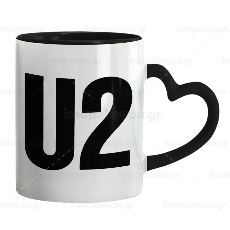 U2 , Κούπα καρδιά χερούλι μαύρη, κεραμική, 330ml