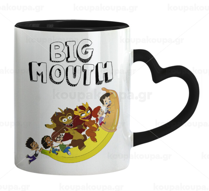 Big mouth, Κούπα καρδιά χερούλι μαύρη, κεραμική, 330ml