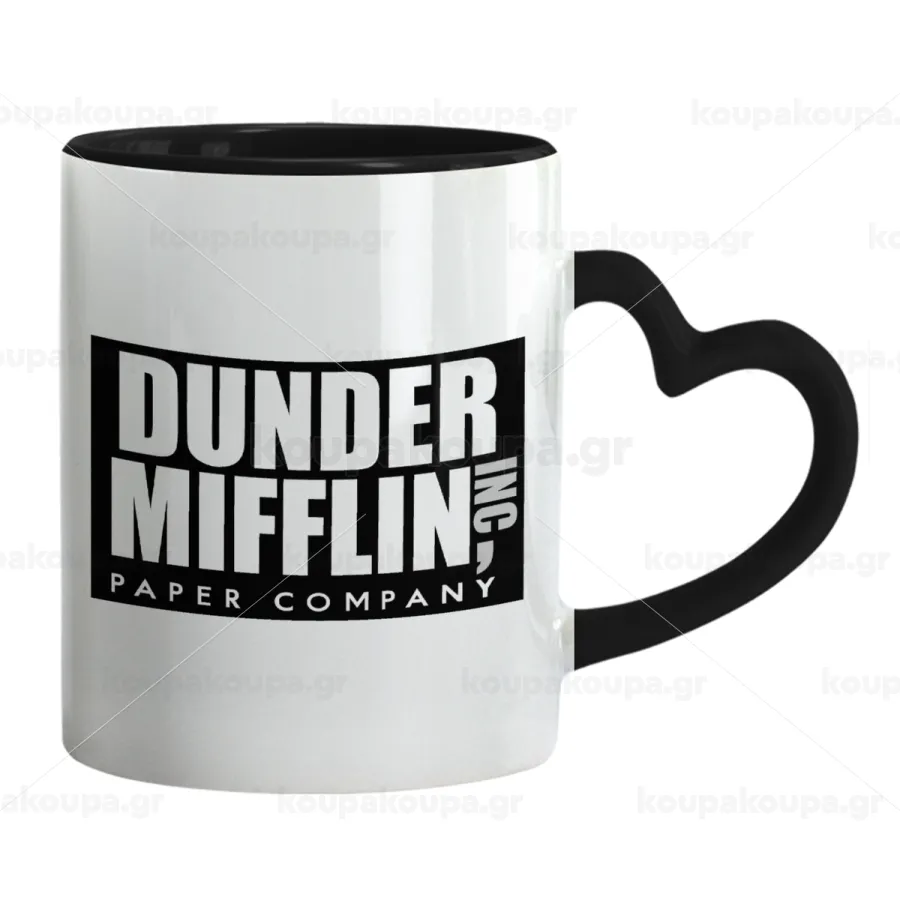 Dunder Mifflin, Inc Paper Company, Κούπα καρδιά χερούλι μαύρη, κεραμική, 330ml