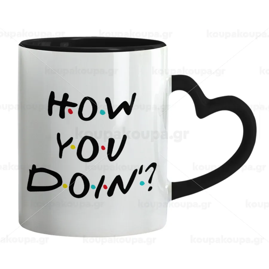 Friends How You Doin'?, Κούπα καρδιά χερούλι μαύρη, κεραμική, 330ml