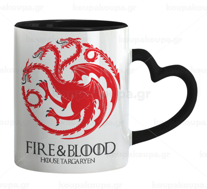 GOT House Targaryen, Fire Blood, Κούπα καρδιά χερούλι μαύρη, κεραμική, 330ml
