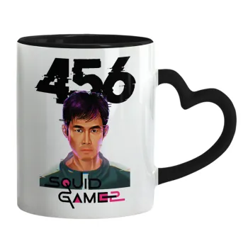 Squid game 456 Gi-Hun, Κούπα καρδιά χερούλι μαύρη, κεραμική, 330ml