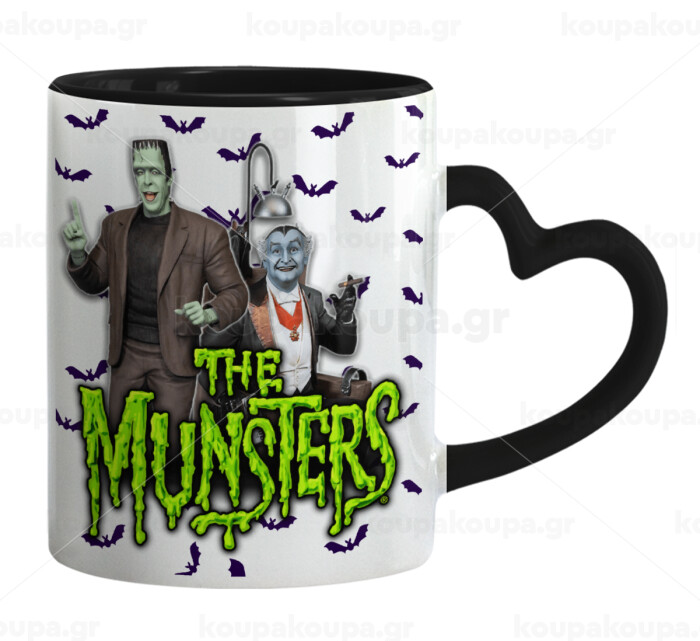 The munsters, Κούπα καρδιά χερούλι μαύρη, κεραμική, 330ml