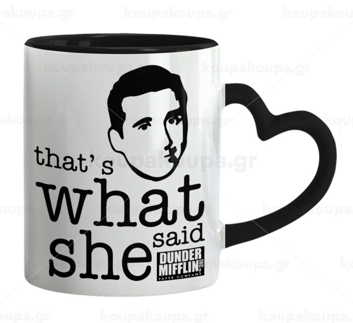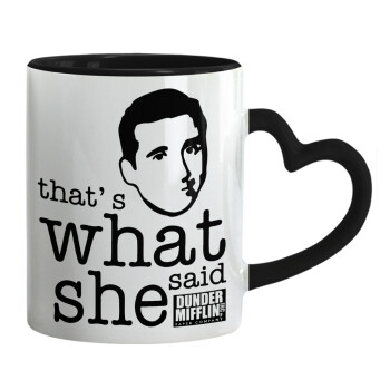 The office Michael That's what she said, Κούπα καρδιά χερούλι μαύρη, κεραμική, 330ml