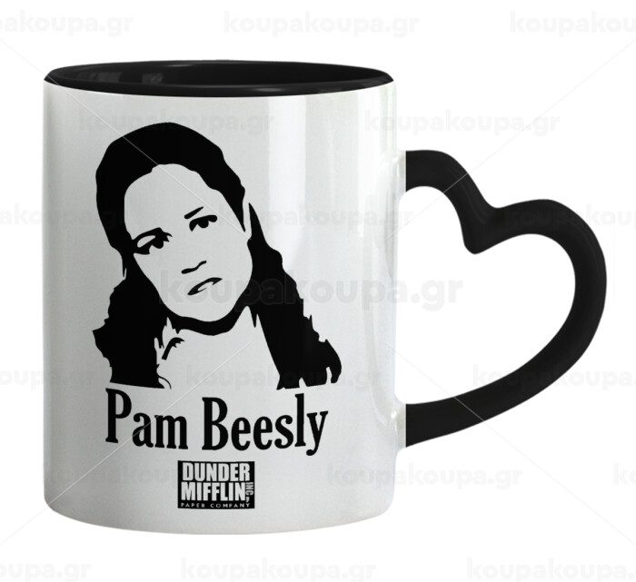 The office Pam Beesly, Κούπα καρδιά χερούλι μαύρη, κεραμική, 330ml