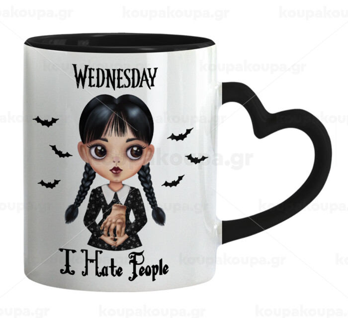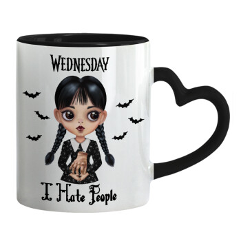 Wednesday Adams, i hate people, Κούπα καρδιά χερούλι μαύρη, κεραμική, 330ml