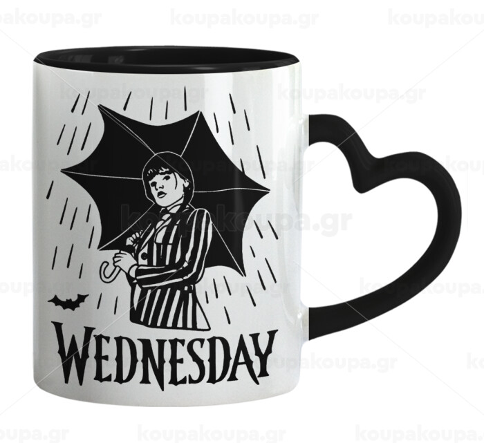 Wednesday Addams, Κούπα καρδιά χερούλι μαύρη, κεραμική, 330ml