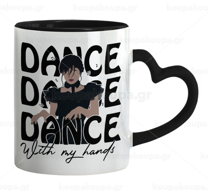 Wednesday dance dance dance, Κούπα καρδιά χερούλι μαύρη, κεραμική, 330ml