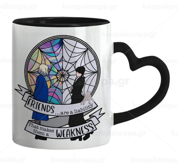 Wednesday window, Κούπα καρδιά χερούλι μαύρη, κεραμική, 330ml