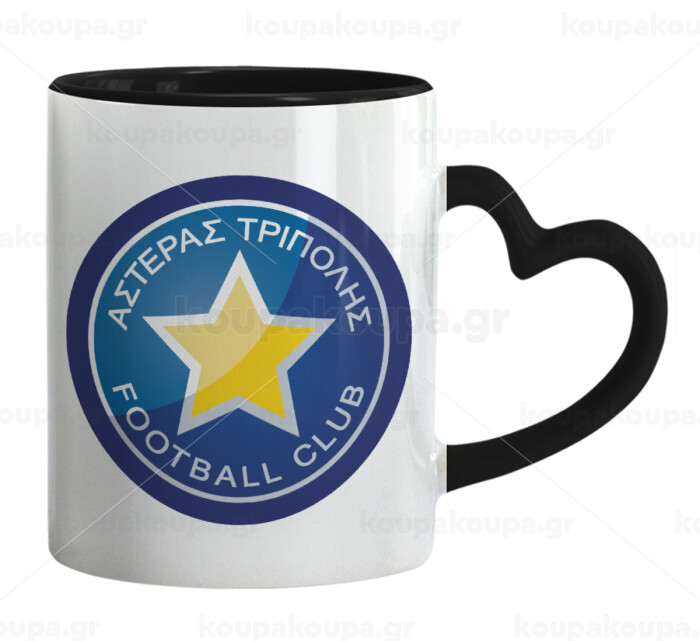 Αστέρας Τρίπολης, Κούπα καρδιά χερούλι μαύρη, κεραμική, 330ml