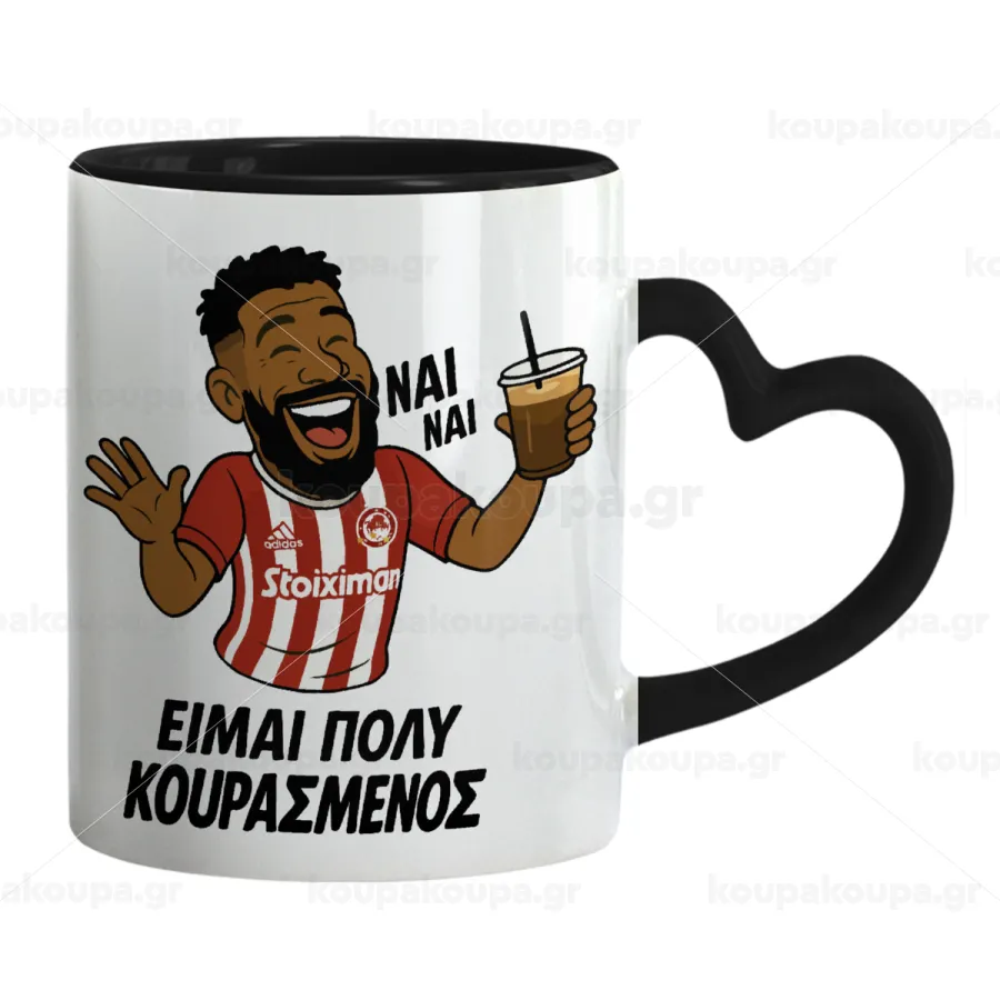 Ροντινέι, "ΠΟΛΥ ΚΟΥΡΑΣΜΕΝΟΣ", Κούπα καρδιά χερούλι μαύρη, κεραμική, 330ml