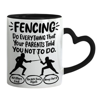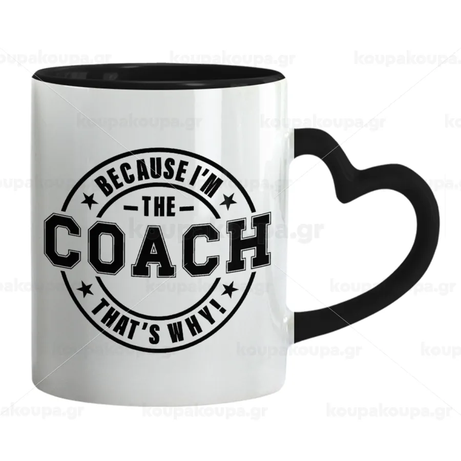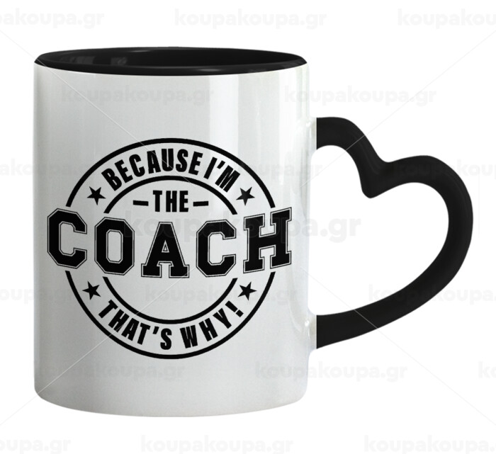 Because i'm the Coach, Κούπα καρδιά χερούλι μαύρη, κεραμική, 330ml