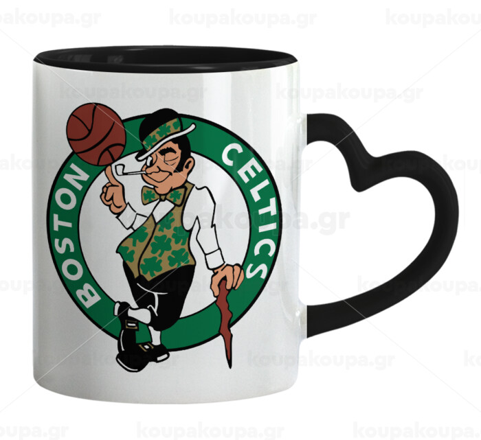 Boston Celtics, Κούπα καρδιά χερούλι μαύρη, κεραμική, 330ml