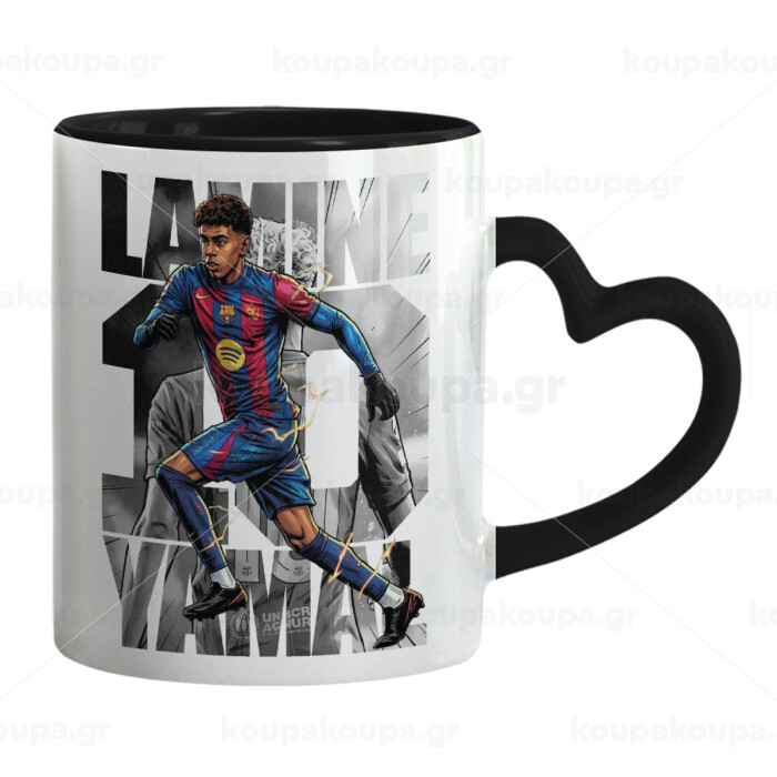 Lamine Yamal (Λαμίν Γιαμάλ), Κούπα καρδιά χερούλι μαύρη, κεραμική, 330ml