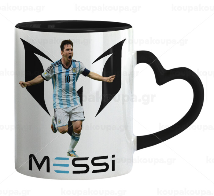 Λιονέλ Μέσι, Leo Messi, Κούπα καρδιά χερούλι μαύρη, κεραμική, 330ml