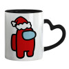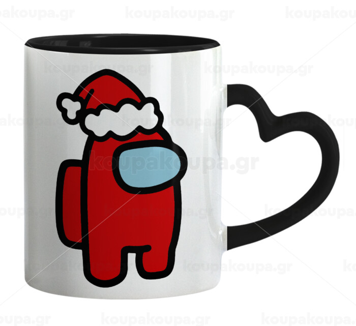 Among US Santa, Κούπα καρδιά χερούλι μαύρη, κεραμική, 330ml